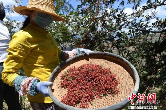 地处秦巴山区的甘肃陇南市武都区迎来花椒收获季节。(资料图) 杨艳敏 摄