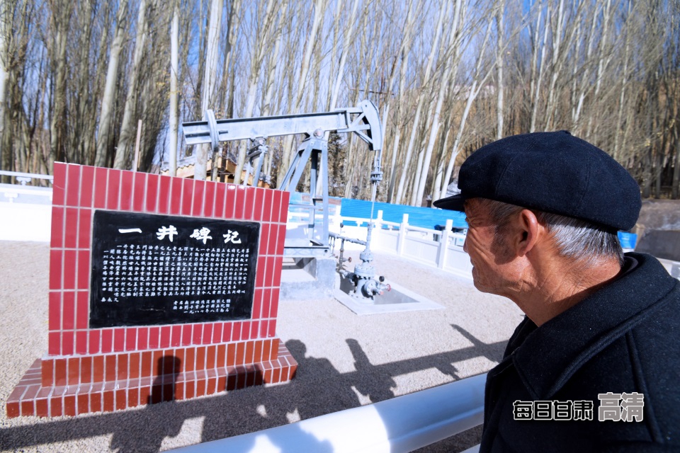 一位老人在新中国的第一口油井边上,饱含深情驻足凝视。