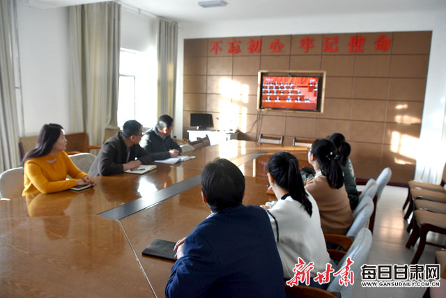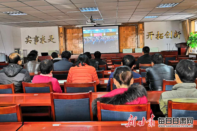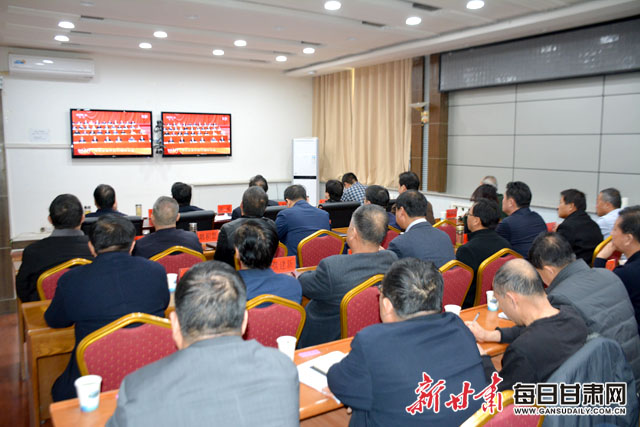 瓜州县委中心组成员和各单位主要领导集中收听收看大会盛况。