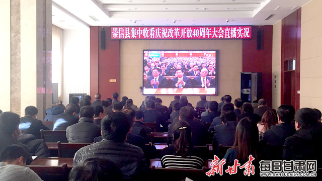 崇信县集中收看庆祝改革开放40周年大会直播实况。