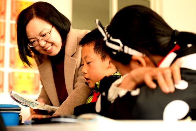12月21日,在甘肃省渭源县清源镇第一小学,来自福州的支教教师王琦在辅导学生。新华社发(王纲摄)