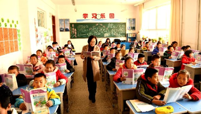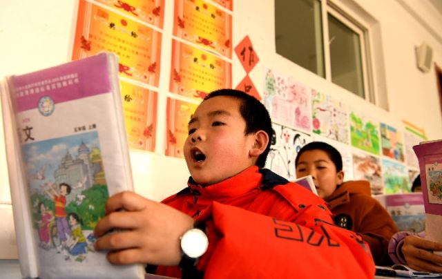 12月21日,在甘肃省渭源县清源镇第一小学,孩子们在上王琦老师的课。新华社发(王纲摄)