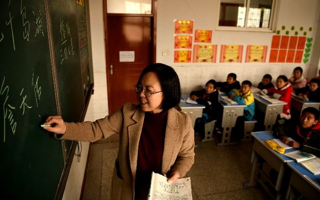 12月21日,在甘肃省渭源县清源镇第一小学,来自福州的支教教师王琦在上课。新华社发(王纲摄)