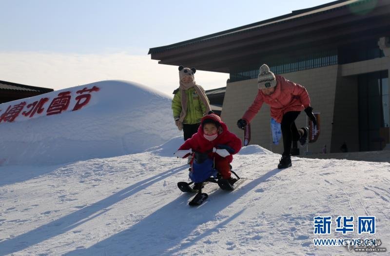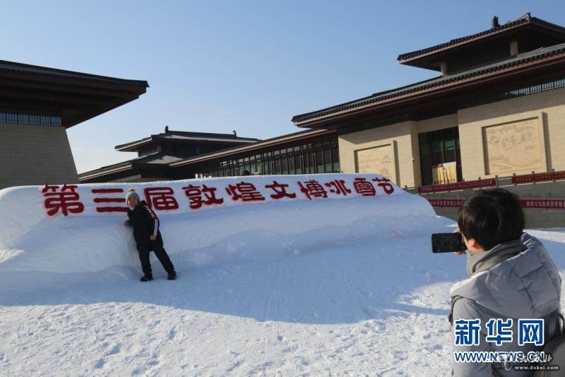 12月22日,游客在第三届敦煌文博冰雪节现场游玩。