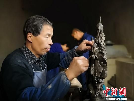 55岁的刘泉是甘肃平凉脊兽制作的传承人,家中祖辈4代人都从事脊兽制作,“手手相传”已经有200余年的历史。魏建军摄