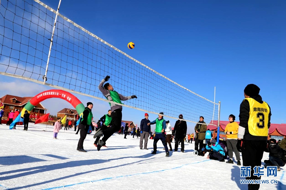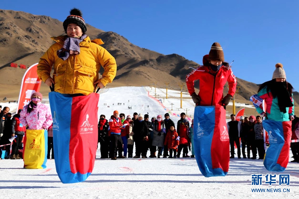 2018年12月30日,张掖祁连山冰雪运动嘉年华暨第六届金张掖冰雪旅游文化节系列活动在甘肃张掖祁连山国际滑雪场开幕。来自兰州、酒泉、嘉峪关、金昌、武威、张掖等地的1000余名冰雪爱好者参加了当天的活动。活动现场举行了雪地徒步越野、雪地拔河、雪地袋鼠跳、雪地行走、雪地排球等户外运动项目,以及动感雪圈接力、雪地跳绳、雪地踢毽子等嘉年华体验项目和拔棍、顶杠子等民族体育项目,健康低碳喜迎新年。新华网发 (成林 摄)