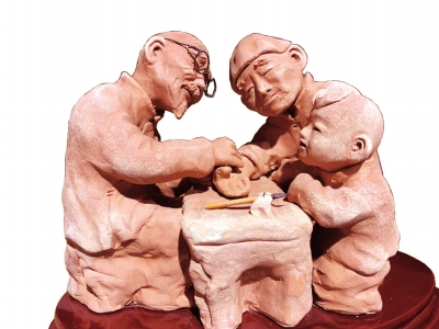 岳云生的泥塑为何不烧陶?他这样解释:“一般来讲,泥、陶、瓷各有各的味道,泥塑作品如果烧成陶瓷,就失去了泥的韵味。中国烧陶的历史有六千年,但是敦煌、麦积山的泥塑就没有烧陶,天津泥人张、惠山泥人也没有烧陶,就是为了表现泥塑的原汁原味。”