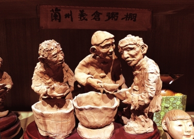生在兰州,长在兰州,岳云生对这片土地爱得深沉。他不仅塑造了千余个动人的人物形象,还将兰州的非物质文化遗产用泥塑的形式记录了下来,羊皮筏子、牛肉面、高担酿皮……的风土人情浓缩于小小的泥塑,让参观者为之惊叹。