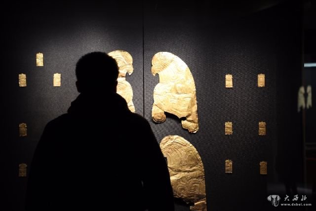 1月29日,一位观众参观曾流失海外、现已回归甘肃的大堡子山金饰片。新华社记者张玉洁摄