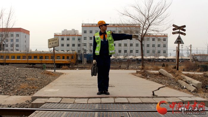 列尾作业员携带设备上线作业,正在执行“一站、二看、三通过”