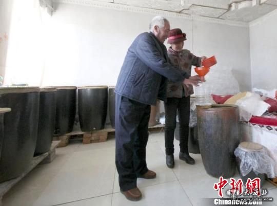 甘肃环县八珠乡八珠塬村代志军自家酿造的8缸黄酒开缸了。 钟欣 摄