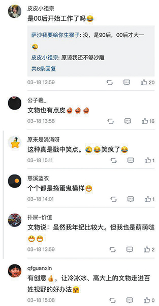有网友评论:这是历史与现代的完美结合。还有网友一本正经地调侃:“是00后已经开始工作了吗?”而不少当地的网友按图索骥,去甘博找到相应文物展柜拍摄,并发挥自己的PS技术制作了原创表情包,积极互动,与“甘博版”表情包展开斗图。