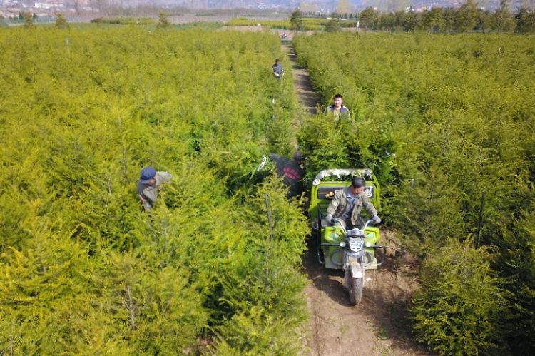 近年来,徽县把苗木产业作为助推精准扶贫的一项重要举措,组建育苗专业合作社83个,发展育苗公司23家,培育育苗示范村80个、育苗专业村96个,育苗面积累计达16万亩。苗木产业已成为当地农民增收的绿色富民产业。新华社记者 范培珅 摄
