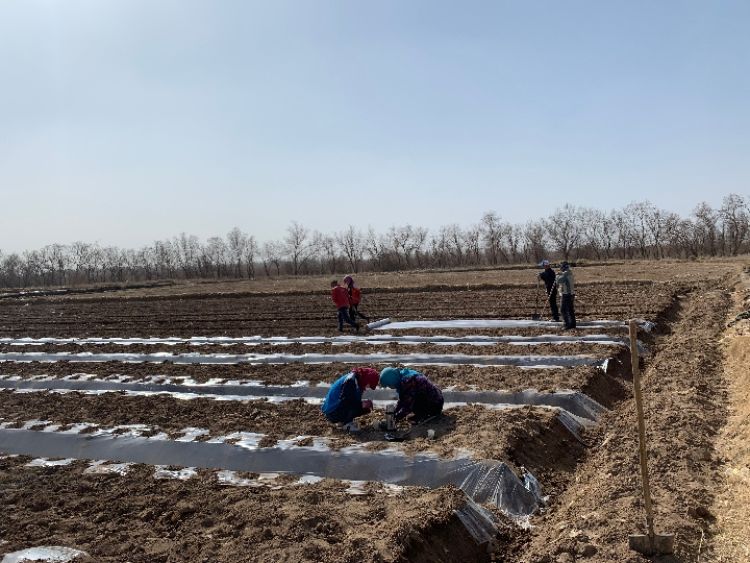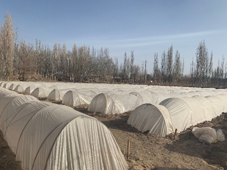 甘肃省敦煌市黄渠镇的瓜农正在做搭“小拱棚”前的准备工作。新华社记者侯韶婧摄