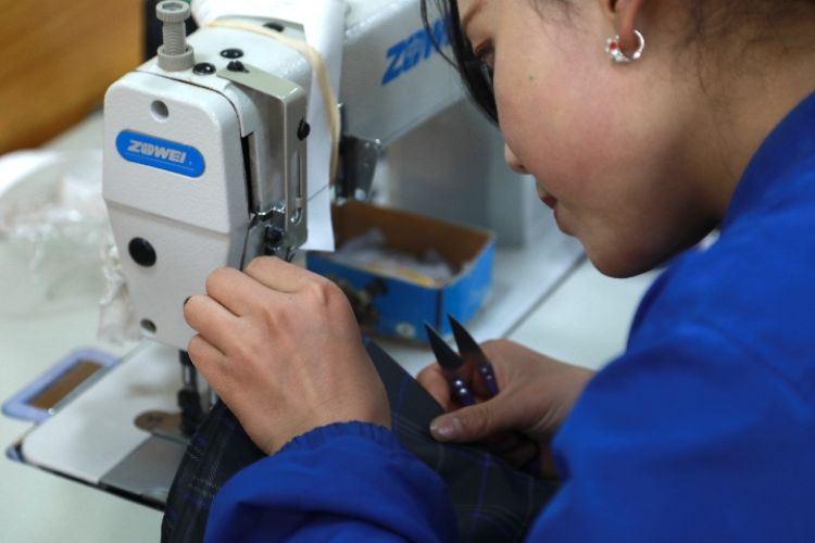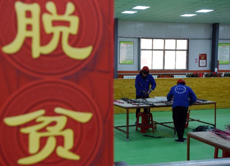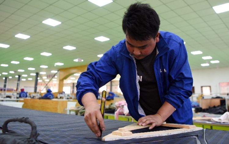 2018年以来,甘肃省临夏回族自治州东乡族自治县把“扶贫车间”作为加快推进脱贫攻坚进程的主抓手,按照“政府建设、企业运作、群众务工”的模式,让贫困群众就地就近走进“扶贫车间”变身产业工人。据介绍,当地目前已建成运营扶贫车间18个,带动就业700余人,其中吸纳建档立卡贫困户就业人数500多人,人均月收入1500-2500元左右,有效带动贫困群众就近就业增收。新华社记者刘洁摄