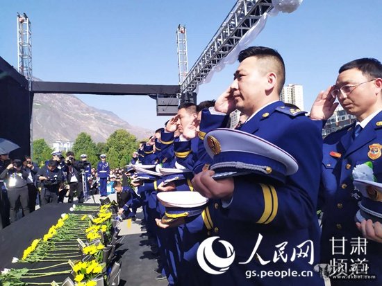 定西市悼念仪式现场。(甘肃省消防救援总队供图)
