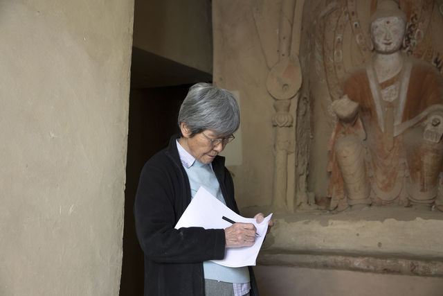 2015年9月29日,樊锦诗在莫高窟第272窟调查洞窟内容。孙志军摄影.jpg