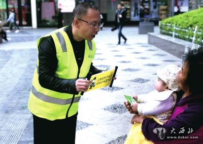 “服务是在集中宣传后期而开展的文明劝导行为,该阶段要求保洁员为随地吐痰的市民发放纸巾,可以让有需求的市民做到把痰吐在纸里,文明握在手里。在向市民递纸巾的同时还可向市民提醒,随地吐痰既影响环境又对身体健康有害,让市民从主观意识上克制随地吐痰陋习。