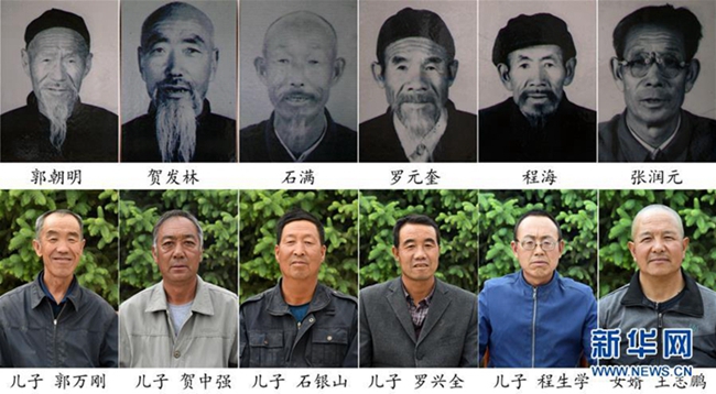 拼版照片:上排从左至右依次为郭朝明、贺发林、石满、罗元奎、程海、张润元;下排从左至右依次为郭朝明儿子郭万刚、贺发林儿子贺中强、石满儿子石银山、罗元奎儿子罗兴全、程海儿子程生学、张润元女婿王志鹏。