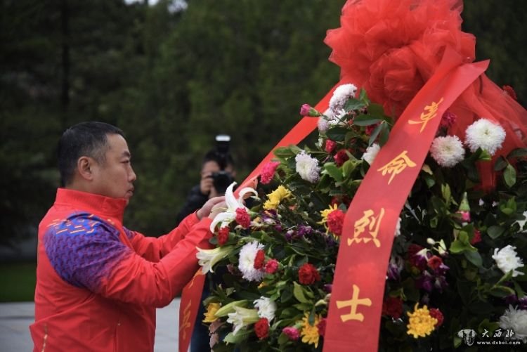 中国乒乓球协会主席刘国梁向革命先烈敬献花篮。新华社记者张睿摄