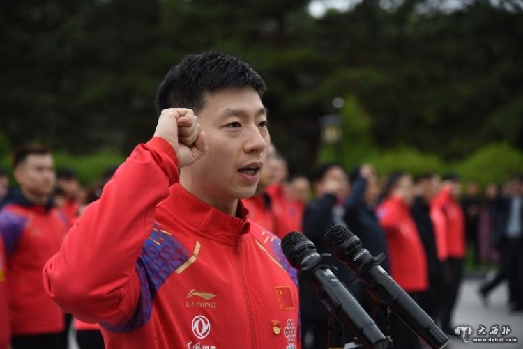 中国乒乓球男子运动员马龙重温入党誓词。新华社记者张睿摄