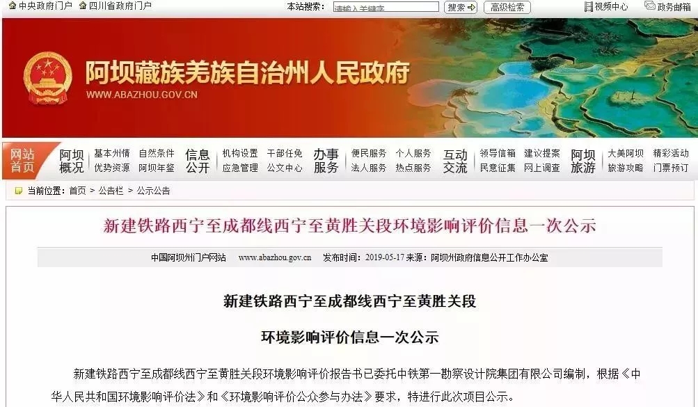 记者从阿坝州门户网站获悉,新建铁路西宁至成都铁路(西宁至黄胜关段)环境影响评价报告书正在进行公示。环评报告显示,西宁至成都铁路线路全长824.72公里,根据此前的报道,该线路的设计时速预计为200公里,理论上建成后,成都至西宁的铁路旅行时间将缩短到5个小时左右。