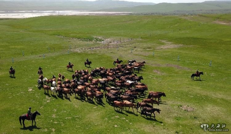 这是在中农发山丹马场草原上拍摄的骏马(无人机拍摄)。新华社记者范培珅摄(资料图片)