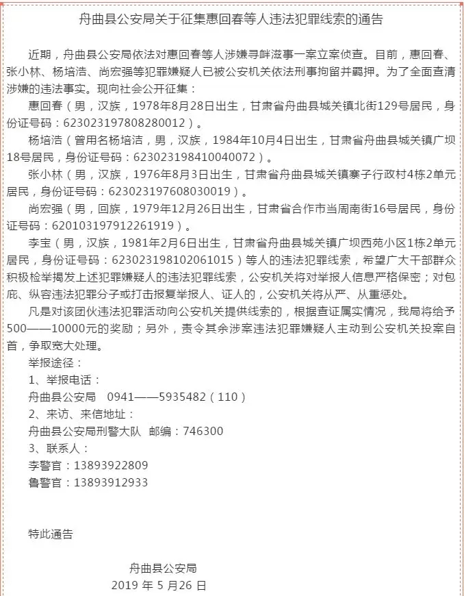 举报邮政信箱:临夏州扫黑除恶专项斗争领导小组办公室118室或临夏州公安局扫黑办404室