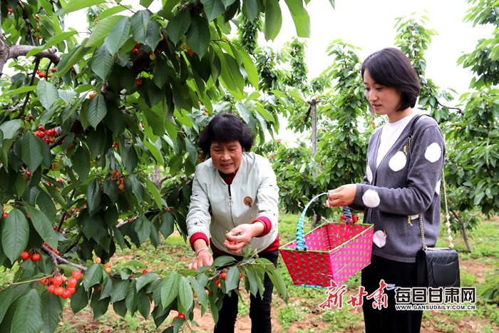 据庆阳市林颖种植专业合作社理事长杨洁介绍,林颖37°樱桃基地是2012年打造的一个标准化生产基地,总面积达到360多亩。今年樱桃从5月25日开始陆续上市,合作社除了借助网络、微信平台等,实行“互联网+销售”模式,将樱桃销往全国各地外,还把20%的园区作为休闲采摘体验区对外开放,供游客上门采摘。