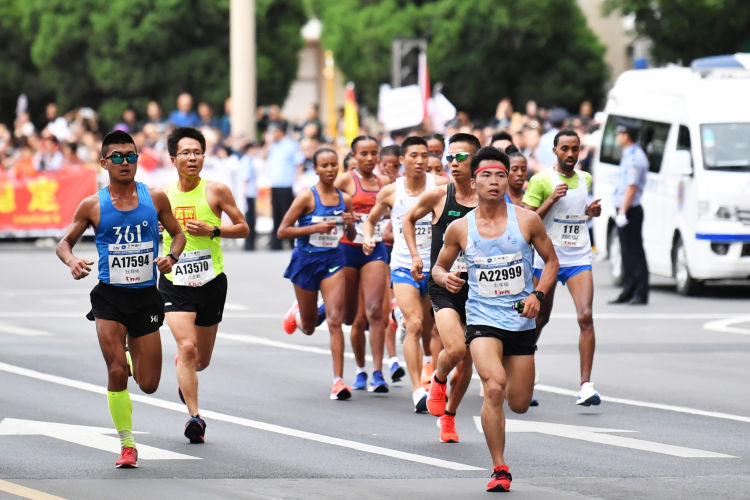 6月2日,参赛选手在2019兰州国际马拉松赛比赛中。新华社记者陈斌摄