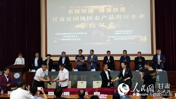 当日的签约仪式中,甘肃金味德拉面文化产业有限公司与全国高校团餐龙头企业、甘肃原料供应企业进行签约,与兰州大学、兰州资源环境职业技术学院签订农校对接兰州牛肉拉面精准扶贫示范窗口建设协议。