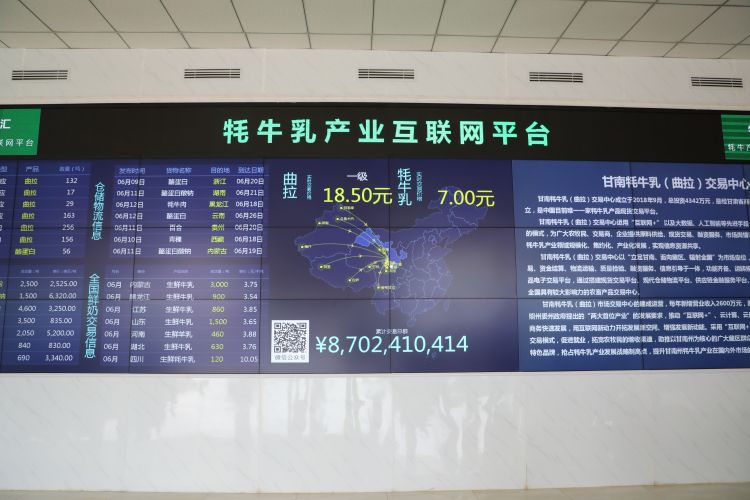 甘南牦牛乳(曲拉)交易中心电子展板。新华社记者胡伟杰摄