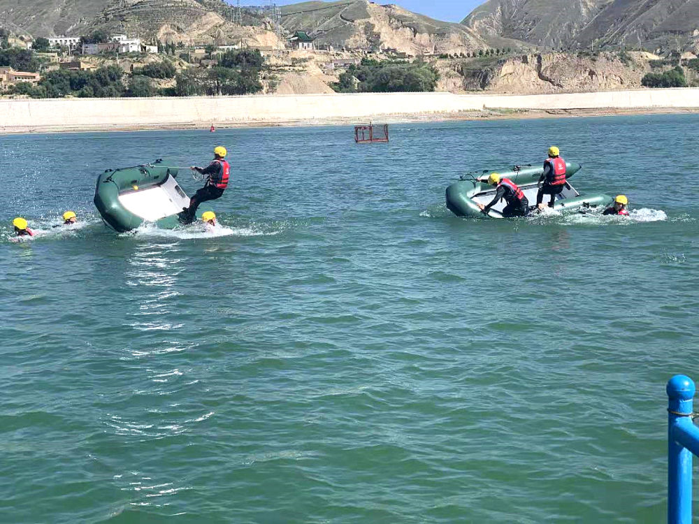 培训演练从实战需要出发,采取课堂教学与实操训练相结合的方式,特邀刘家峡水上训练基地具备多年水域救援经验的教练员,组织队员学习了水域救援基础理论、冲锋舟操作理论等内容,开展了岸际救援、舟艇救援、入水救援和绳索救援等多个科目。(图片由兰州消防支队特勤大队提供)