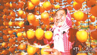 平凉市泾川县罗汉洞乡村民晾晒柿饼。  任 辉摄(人民视觉)