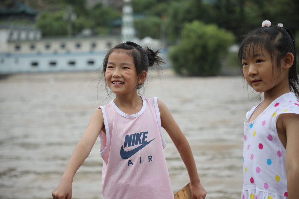 8月7日,在黄河岸边,小朋友们在嬉戏玩耍。(任延昕摄)