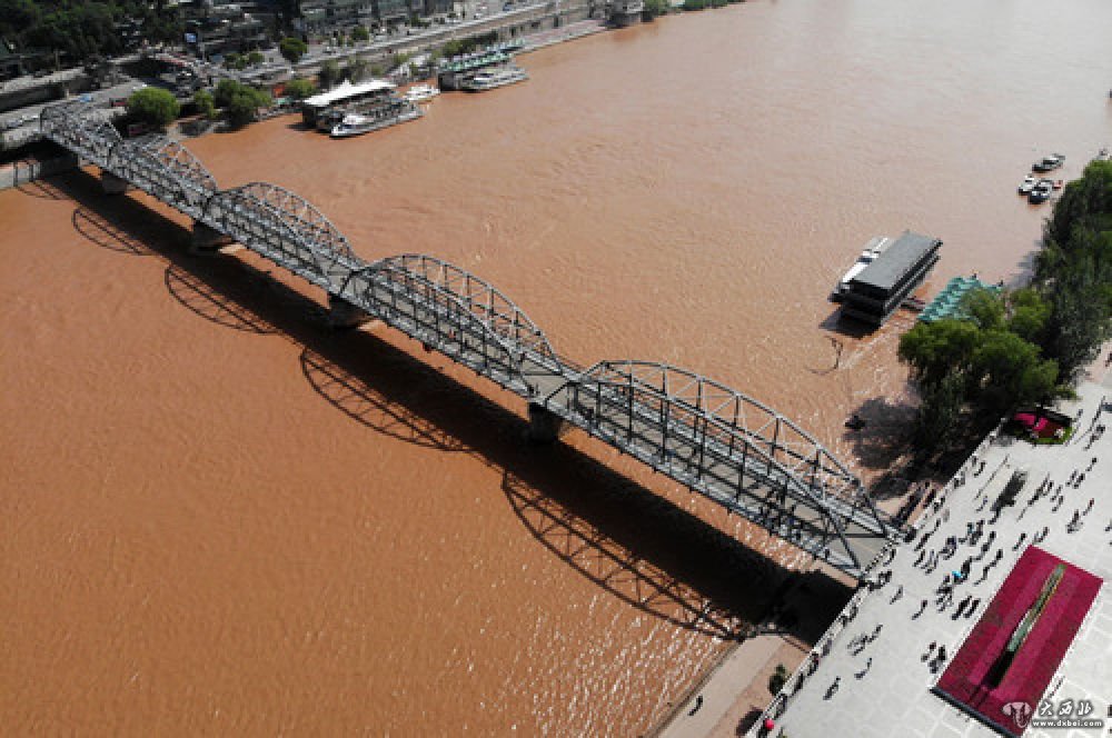 这是黄河兰州段的中山桥(6月12日无人机拍摄)。新华社记者范培珅摄