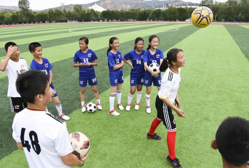 暑假期间,甘肃省临夏市的不少小学生通过参加足球俱乐部或夏令营活动,享受足球运动的快乐。