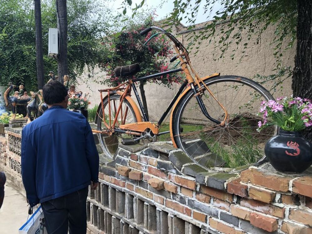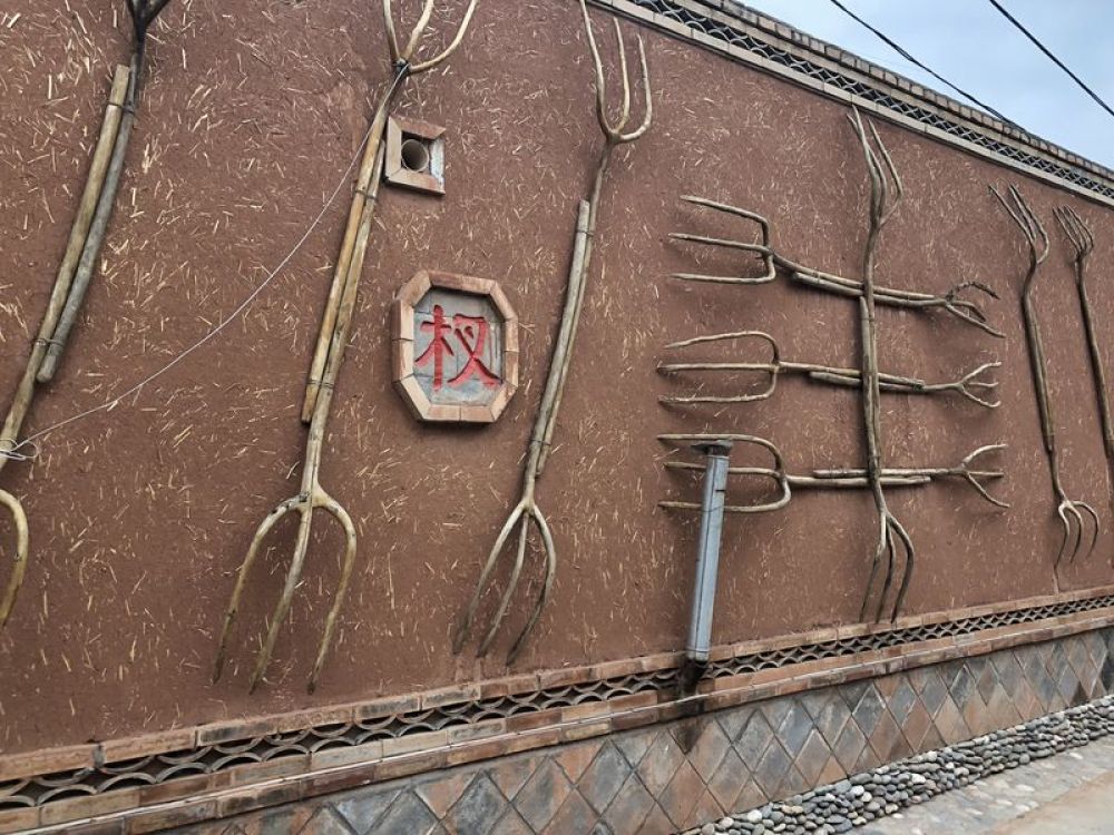 走进甘肃省定西市临洮县洮阳镇双联村,记者看到,整个村落弥漫着浓浓的农耕气息。乡间巷道两旁绿树成荫,摆放着缝纫机和旧式自行车等老物件。村民房屋的外墙上或悬挂着杈、木犁和独轮车等传统农具,或绘有展示丰收季节和田野生活的油画。