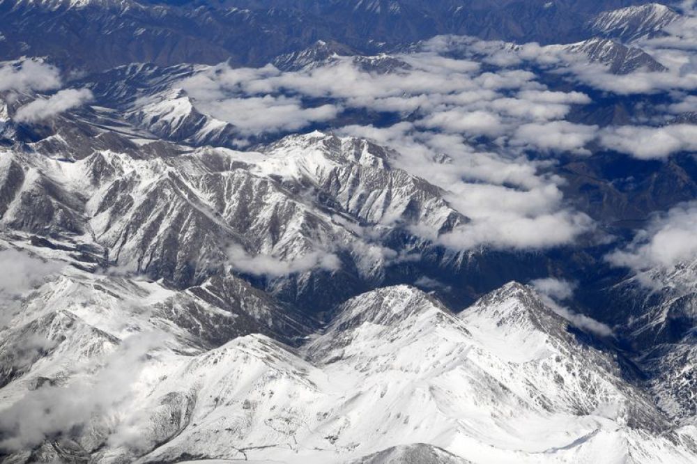 空中俯瞰祁连山腹地,白雪皑皑、云雾缭绕,尤为壮美。新华社记者 范培珅 摄(资料图片)
