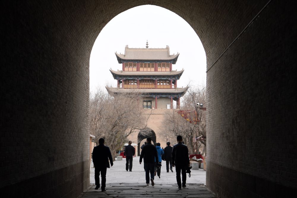 游客在嘉峪关关城内参观(2017年2月15日摄)。新华社记者范培珅摄