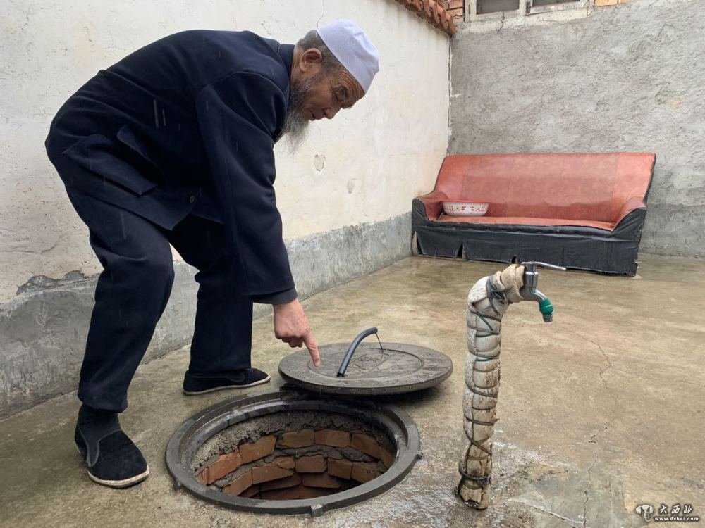 马清贵正在展示入户自来水设备。新华社记者张玉洁摄