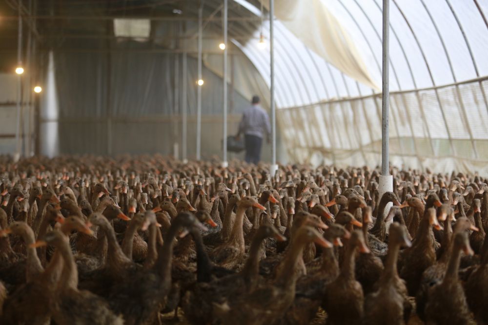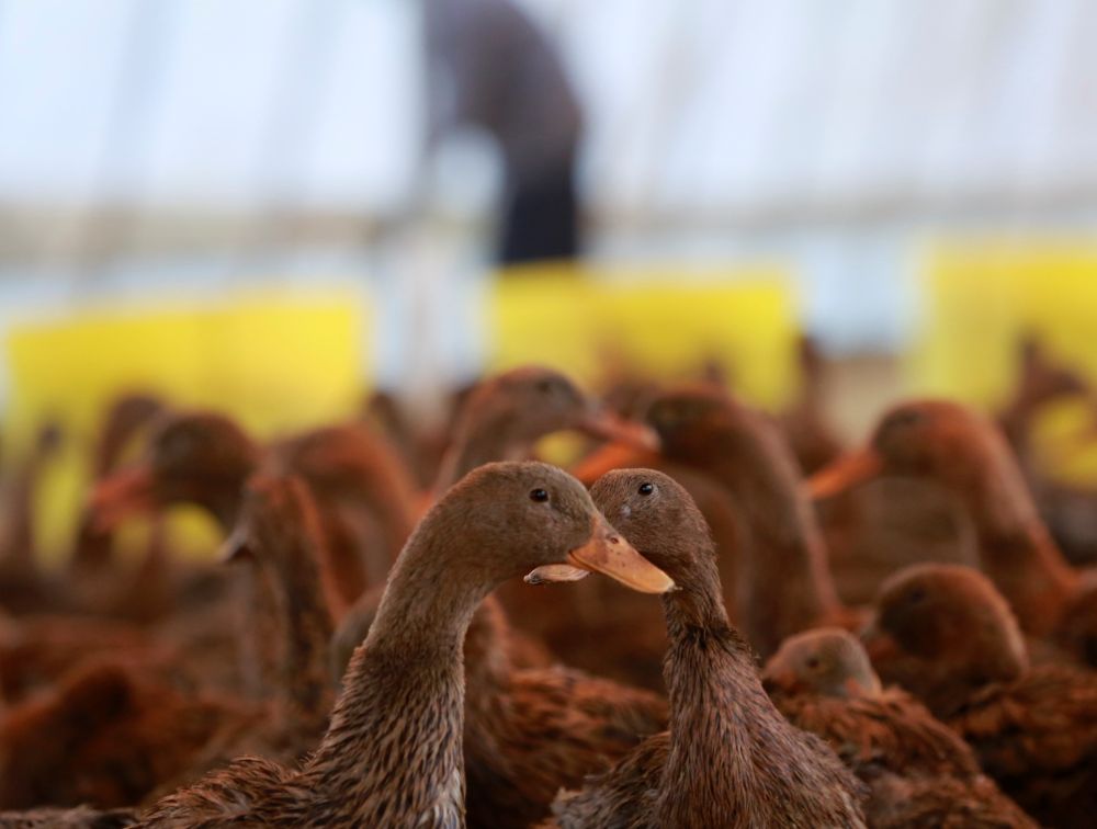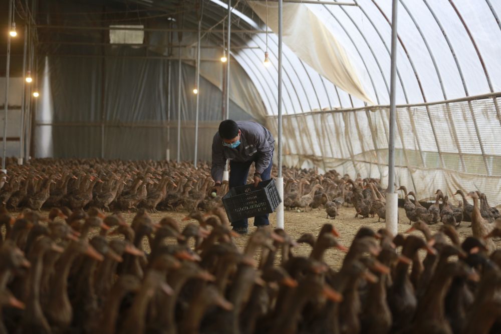 甘肃省天水市秦安县立足脱贫攻坚实际,在天津市津南区和大连商品交易所的帮扶下,通过“党支部+公司+基地+合作社+农户”的模式,打造蛋鸭养殖和深加工产业,拓宽农民增收渠道,为全县的脱贫攻坚提供有力保障。新华社发(杜哲宇摄)