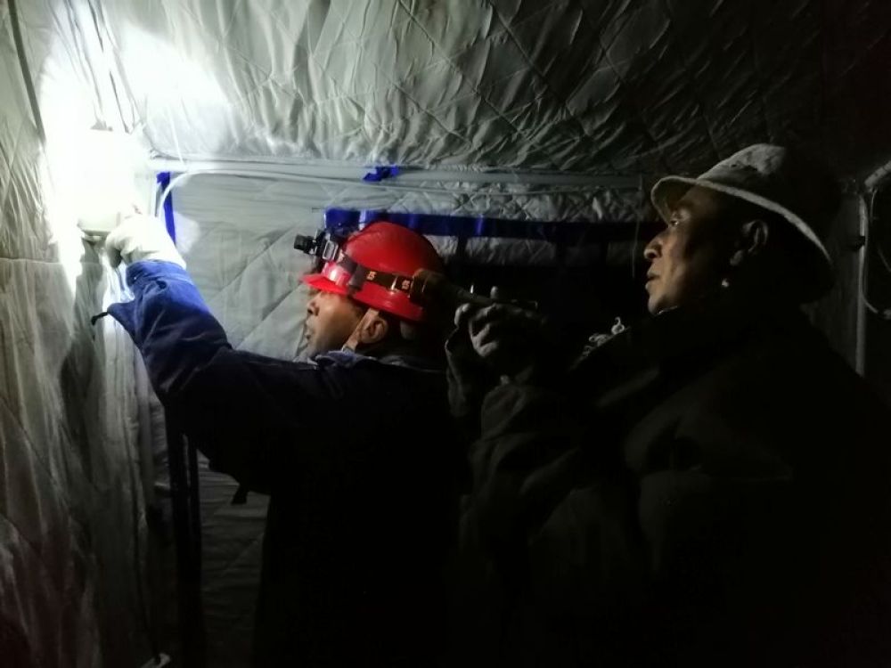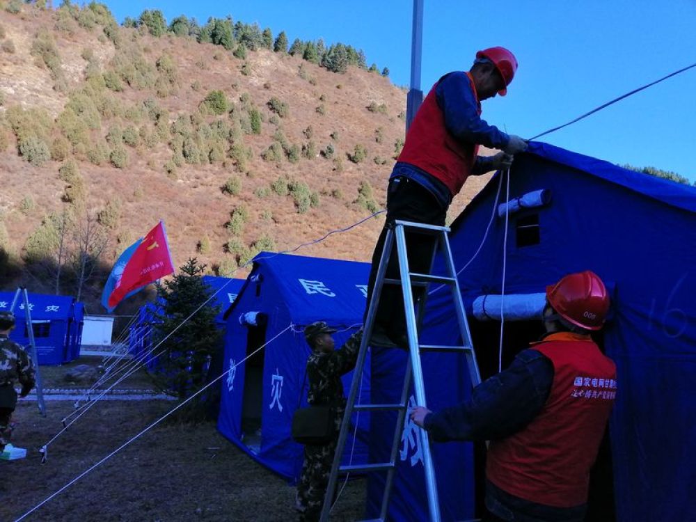 10月28日,国网甘南供电公司共产党员服务队队员为夏河县达麦乡熊猫沟安置点帐篷接通临时电源。