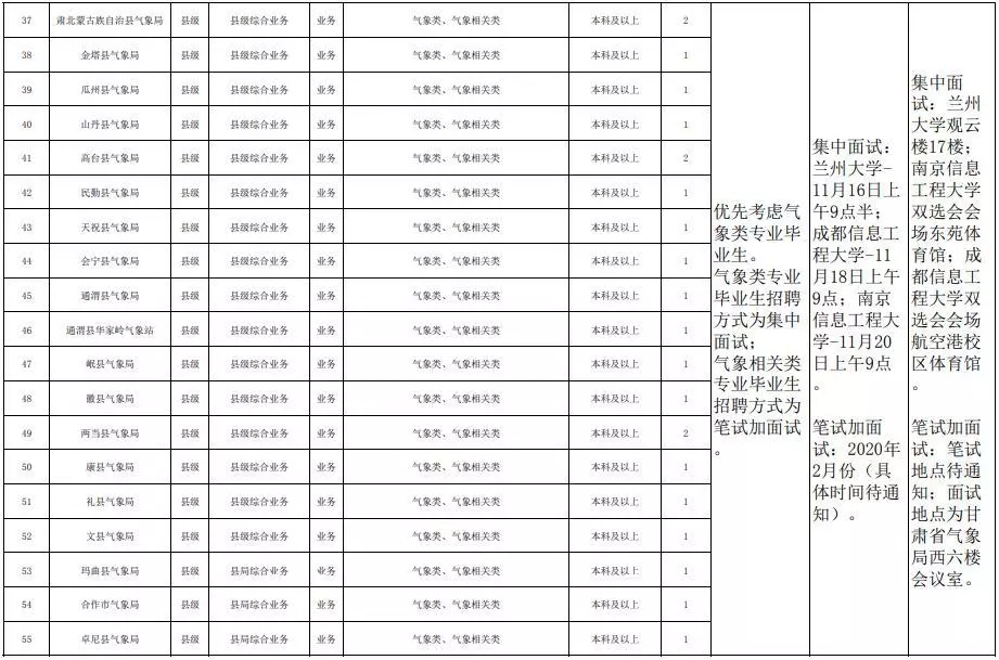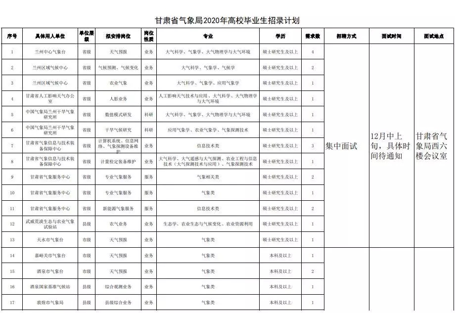附件:1.甘肃省气象局2020年高校毕业生招录计划