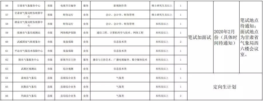 2020年2月上旬,甘肃省气象局通过官方网站和相关学校网站发布招录公告。