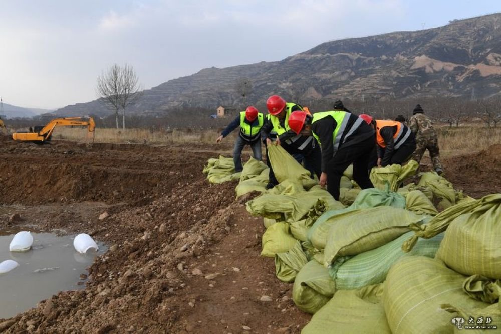 11月27日,在天水市秦安县莲花镇上河村6号围堰位置,当地政府组织人员加固围堰体。新华社记者范培珅摄