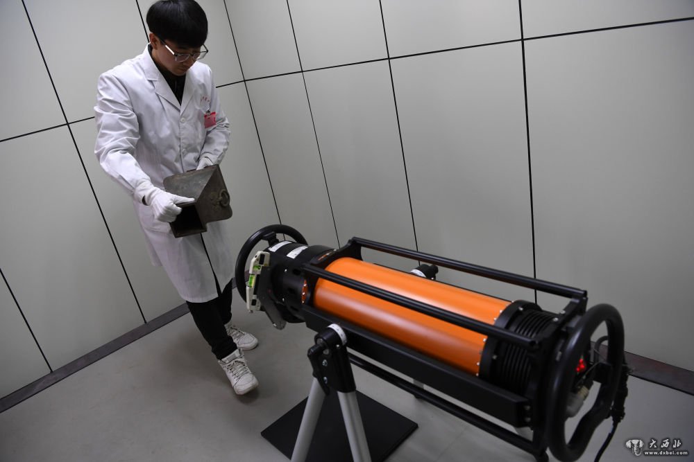 12月26日,在天水市博物馆文物保护修复中心X射线数字成像检测室,专业技术人员高兵准备对一件青铜器的内部结构和铸造工艺进行检测。新华社记者马宁摄