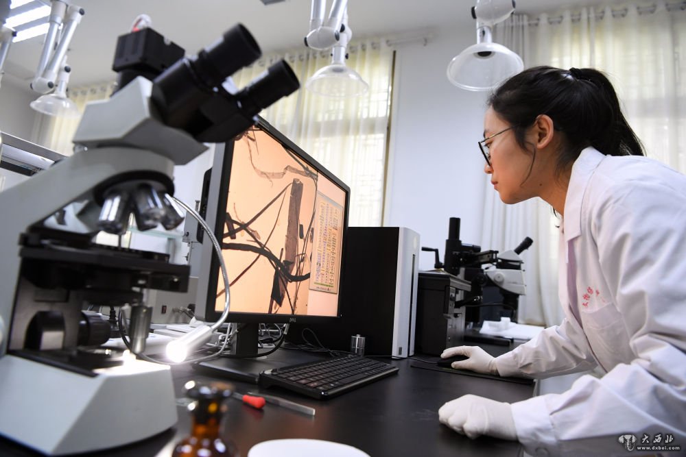 12月26日,在天水市博物馆文物保护修复中心分析检测试验室,专业技术人员丁薇操作纸张纤维测量仪检测纸张纤维。新华社记者马宁摄