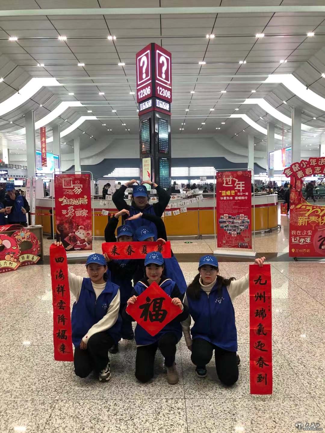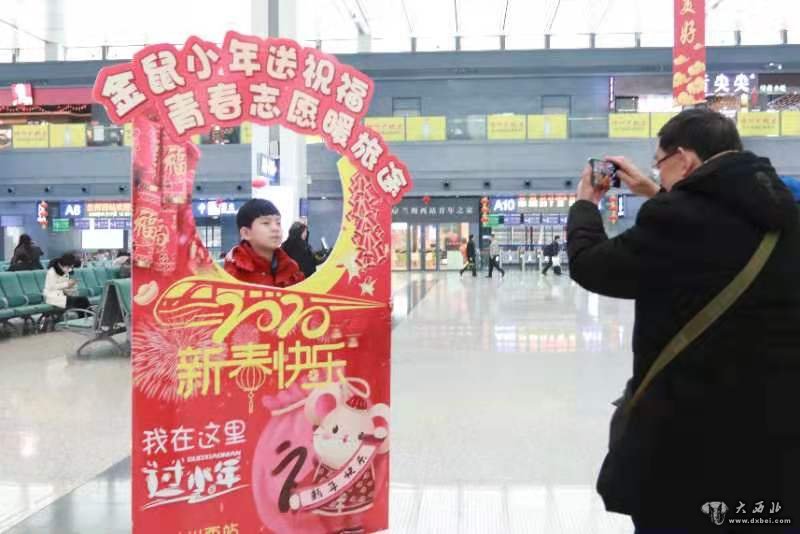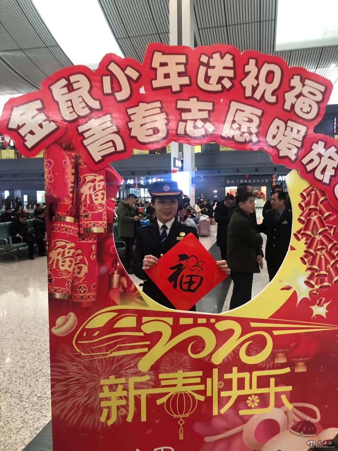 15时30分,“祝福你我的祖国,我把满腔的赤诚献给你……”悠扬的歌声在兰州西站候车大厅唱响,这是兰州局集团公司团委组织的“金鼠小年送祝福、青春志愿暖旅途”主题联欢活动。兰铁青年志愿者载歌载舞,与旅客热情互动,为回家的旅客送去新年的祝福。活动现场,一个可爱的“金鼠”手持福字、憨态可爱,与“金鼠”同框成为旅客争先拍照的“打卡点”。同时,志愿者还准备了精心设计制作的新春贺卡,邀请旅客写下新年的祝福和愿望,形成一面别致的“祝福墙”,成为当天兰州西站一道靓丽的风景。活动期间,装有新春对联、金鼠、福字图案的特色福包大受旅客欢迎,把活动气氛推向了高潮。