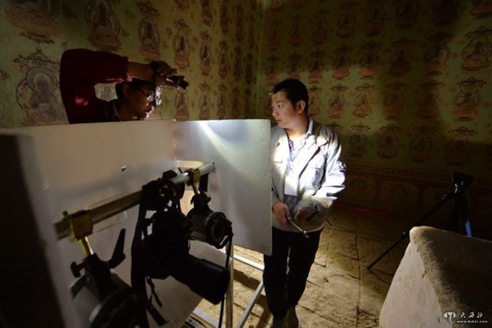 敦煌研究院工作人员对莫高窟152窟进行数字化采集(2014年9月1日摄)。
